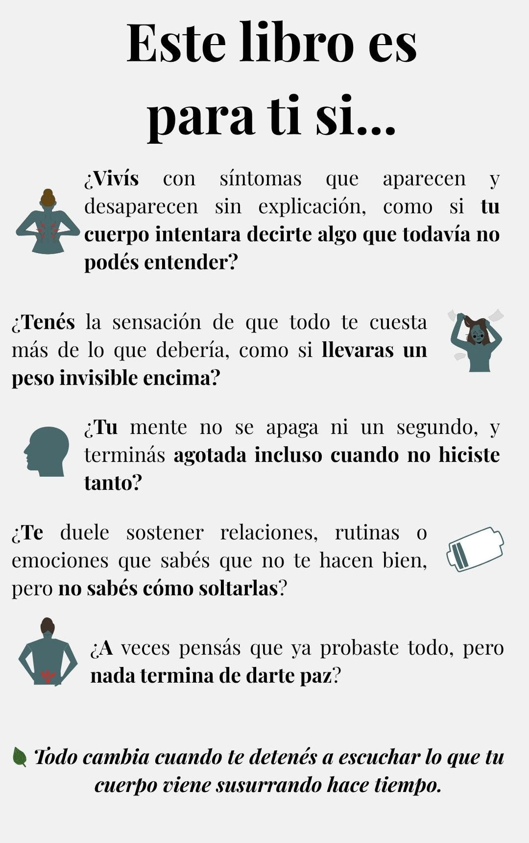 Justamente este libro es para vos 🙌. La biodescodificación aborda la causa emocional que muchas veces queda fuera de los tratamientos médicos. Aprenderás técnicas prácticas para liberar emociones atrapadas, y muchas lectoras notan cambios reales en pocas semanas.